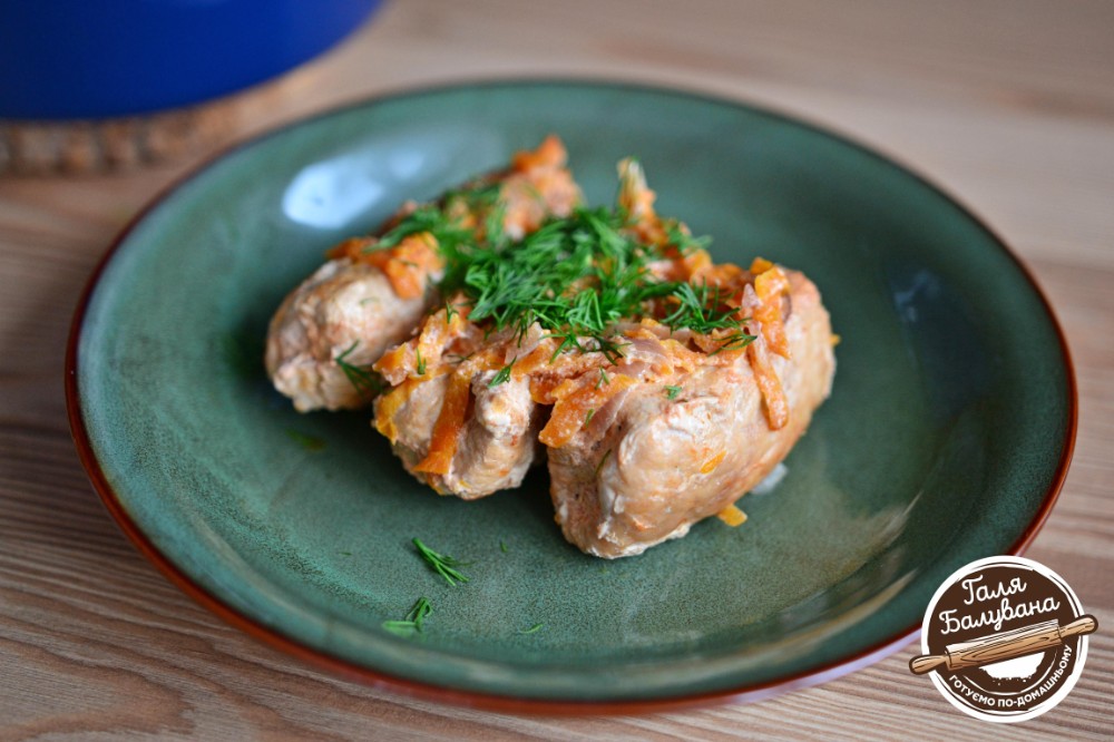 Спосіб приготування: голубці помістити в каструлю замороженими, зробити зажарку з моркви, цибулі, за бажанням додати сметану, томатну пасту в зажарку. Залити водою, щоб закрило верх голубців і тушкувати в літній період 40 хв., в зимовий 2 години на малому вогні.